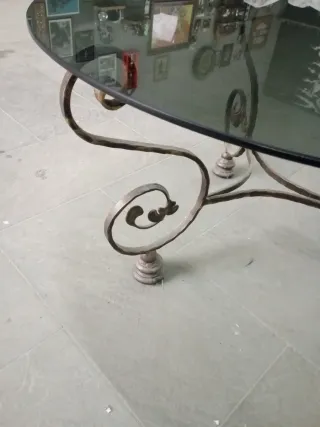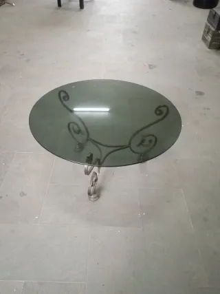 Tavolino rotondo vintage in vetro e metallo