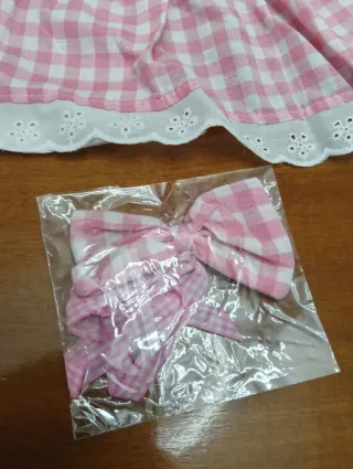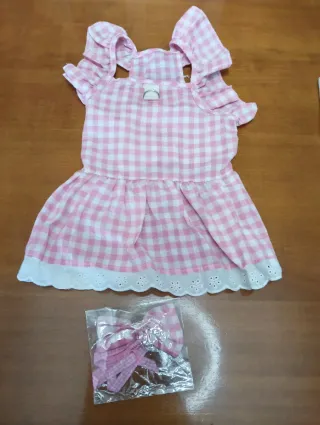 Grazioso vestito per cane con fantasia a quadri. - Scollo rotondo. - Maniche a volant. - Orlo con pizzo. - Include fiocco abbinato.lung.43 larghezza 25 .XL cotone