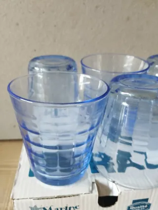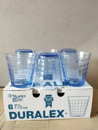 Set di 12 bicchieri Duralex, perfetti per ogni occasione. Sono resistenti e dal design moderno. - Capacità: 22 cl (7.4 oz). - Modello: Marine Prisme.