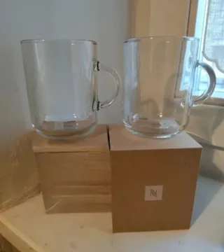Set di 2 tazze Nespresso Vertuo in vetro trasparente. UNA COMPLETA DI SCATOLA ,L'ALTRA SENZA SCATOLA . - Design elegante e moderno. - Manico comodo per una presa sicura. - Ideali per gustare le tue bevande preferite.