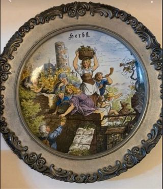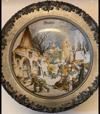 Bellissimo set di piatti decorativi Le 4 stagioni. - Decorazione a tema stagionale. - Cornice in metallo lavorato.