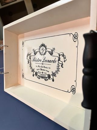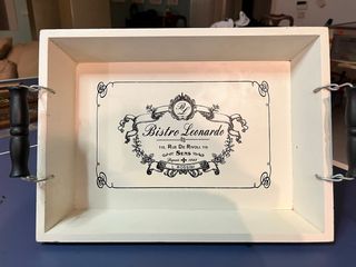 Vassoio stile francese in legno bianco con manici neri di dimensioni 33 × 24 × 4 utilizzabile sia come vassoio che per decorazione di interni. Pochissimi segni di usura come da foto.