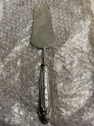 Elegante paletta per dolci dal design vintage. Un accessorio raffinato per servire torte e dessert. - Lama decorata con motivi floreali. - Manico lavorato con dettagli. - Finitura lucida.