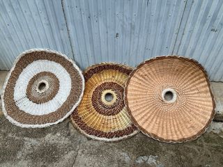 Tappeto decorativo con design circolare e texture naturali. Ideale per aggiungere un tocco rustico alla tua casa. Realizzato con fibre di iuta e tela. Tonalità terra e beige che si combinano facilmente.