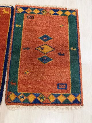 Vendo 2 tappeti Gabbeh originali dall'India, fatti a mano. Si distinguono per i loro colori caldi, motivi geometrici tradizionali e lana spessa e resistente, molto piacevole al tatto. 📏 Dimensioni: 60 × 90 cm ciascuno ✔️ Fatti a mano ✔️ Lana naturale ✔️ Stile etnico / boho ✔️ Ottime condizioni ✔️ Ideali per soggiorno, camera da letto, ingresso o piedi del letto. Possono essere venduti insieme o separatamente. Portano molta personalità e calore in qualsiasi spazio.