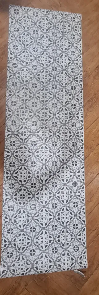 Moquette vinilica per corridoio o cucina di 58 × 200 cm. Design a piastrelle in toni di grigio e bianco e base antiscivolo (visibile nelle foto). Facile da pulire e resistente all'acqua, ideale per cucina, ingresso, corridoio o bagno. - Nuova.
