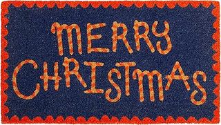 Fisura - Tappeto ingresso casa 'Merry Christmas' di cocco con base antiscivolo in PVC. Tappeto natalizio blu e rosso.