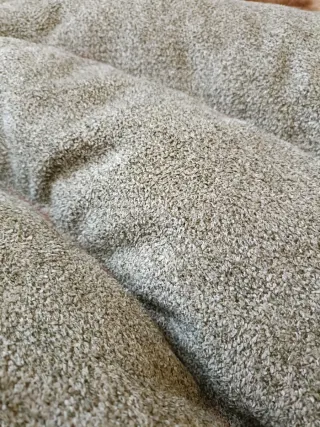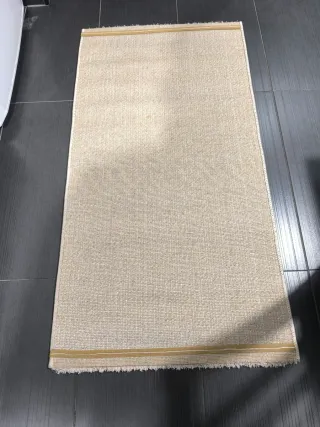 Vengono venduti due tappeti in poliestere. Sono morbidi e di colore beige. Ideale per qualsiasi stanza. - Dimensioni approssimative: due tappeti grandi e uno piccolo. - In buone condizioni. Il prezzo è per ogni tappeto.