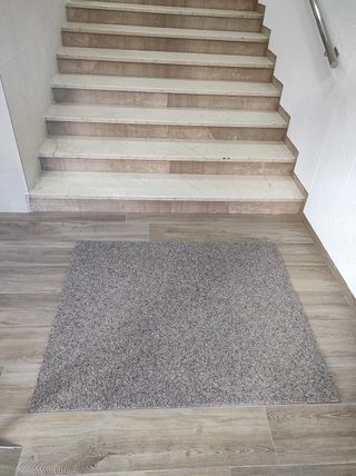 Tappeto di tessuto di grandi dimensioni, in tonalità di grigio e bianco. È un articolo nuovo, venduto per non adattarsi alle dimensioni della stanza. Prezzo originale 40 euro. Design moderno e versatile. Texture piacevole al tatto.