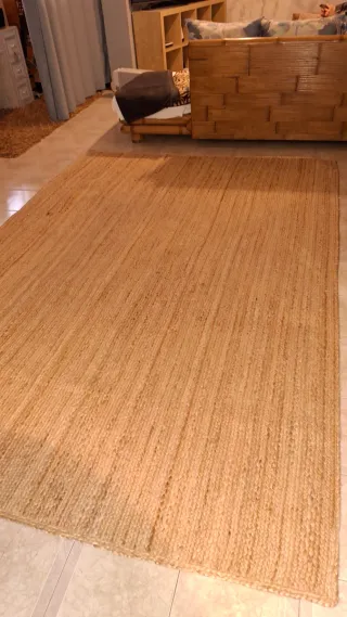 Tappeto in iuta di grandi dimensioni, perfetto per aggiungere calore al tuo soggiorno. Design intrecciato a mano. Tonalità naturali che si combinano facilmente. Misure 200 x 300.