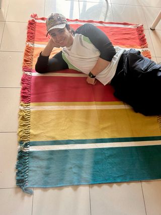 Tappeto in cotone con righe dai colori vivaci. Aggiungi un tocco di colore a qualsiasi spazio. Quasi nuovo! - Realizzato in cotone. - Design a righe multicolor.