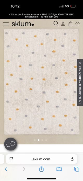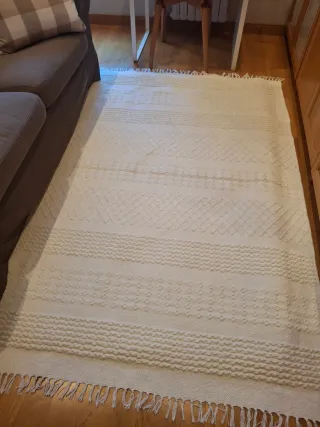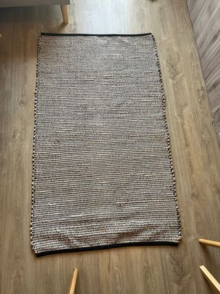 Tappeto in cotone del marchio Sklum. La forma spicca e la qualità è molto buona, è piacevole camminare a piedi nudi su di esso. Il colore risalta molto bene su pavimenti un po' scuri.