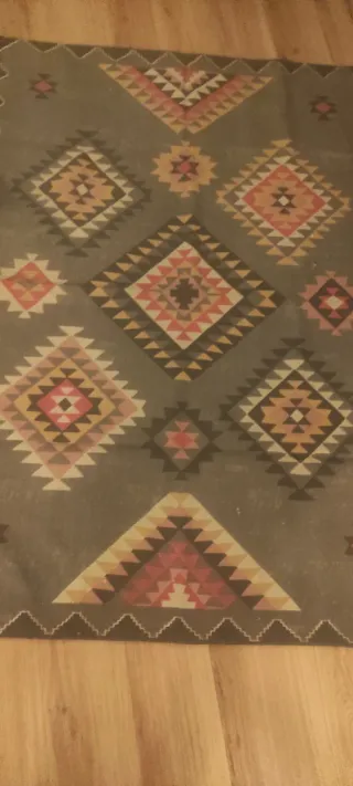 Tappeto in stile kilim con un design etnico e vibrante. Le sue dimensioni sono 160x250 cm, perfetta per dare vita a qualsiasi spazio. Design geometrico multicolore. Tatto piacevole e resistente. Questo tappeto può essere utilizzato su entrambi i lati. Dimensioni: 160 (larghezza) x 250 (lunghezza) cm. Composizione: 100% cotone.