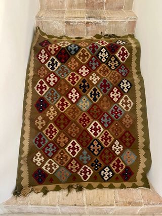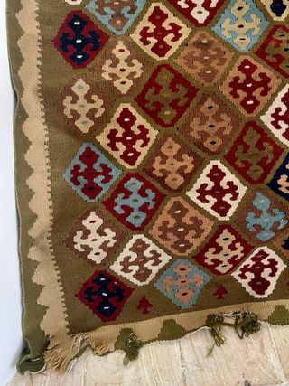 Pezzo unico di Kilim. Dimensioni: 101 x 149 cm. Tappeto kilim che si distingue per originalità, stile e calore. Aggiunge un tocco unico e originale alla casa, migliorando la qualità della decorazione e non passerà inosservato. Composizione: 100% lana lavorata a mano. GUARDA IL MIO PROFILO, HO ALTRI OGGETTI DECORATIVI TUTTI NUOVI. LEROY MERLIN, ZARA HOME, MAISON DU MONDE, IKEA, ARTIGIANALE, LANA, ORIENTAL.