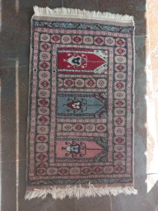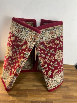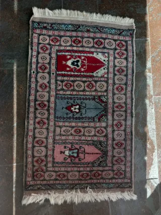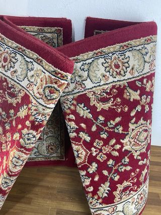 Preziosi tappeti orientali, due pezzi. Ideali per dare un tocco di calore alla tua casa. Non sono mai stati usati. Sono nuovi. Misure: Due di 120x60 e uno di 140x70. - Design classico con dettagli floreali. - Colori caldi e vibranti. - In buone condizioni, con segni normali di utilizzo.