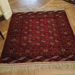 Vendo questo tappeto interamente annodato a mano,qualità Bokara misure 105x101 cm ,provanienza Russia,con questo termine genetico s'indica una vasta produzione di tappeti tutti di lana di buona qualità, realizzati dai nomadi turcomanni d'origine Tekke', Yomut, Ersari, Salor, Kerki.in perfette condizioni proviene da una collezione di famiglia, l'ultima foto è il rovescio,