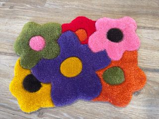 Tappeto con un allegro design di fiori in vari colori. Aggiunge un tocco divertente e accogliente alla stanza. Design floreale. Tocco morbido.