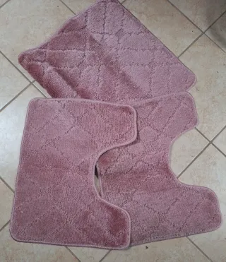 SET 3 TAPPETINI BAGNO della FANCY HOME, composto da un tappeto rettangolare di cm 75 x 45 più due tappetini sagomati per adattarsi al BIDET ed al WC di cm 45 x 38 tutti in poliestere 100% e sottotappeto in polipropinene antiscivolo. Di grande qualità, mai usati, come nuovi.