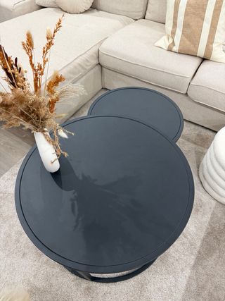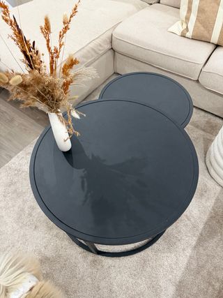 Set di due tavolini rotondi. Design moderno ed elegante. Gambe stabili e resistenti.