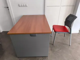 Set di mobili per ufficio che include tavoli, sedie e cassettiere. DA ACQUISTARE INSIEME O SEPARATAMENTE - Pacchetto di 4 tavoli. (2) 120*80 (2) 160*80 - Include 4 sedie. - Include 4 cassettiere.