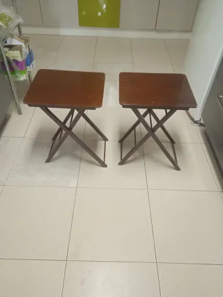 Set di due tavoli pieghevoli in legno, perfetti come supplementari. Sono in buone condizioni, senza difetti.