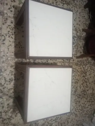In vendita due tavoli ausiliari quadrati da 50x50 cm. Entrambi a 15 euro. Dimensioni: 50 x 50 cm. Materiale: Legno. Colore: Bianco.