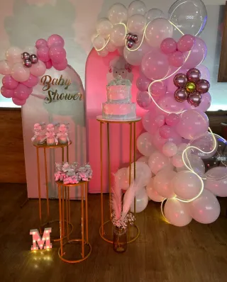 Set di 3 tavoli e 3 archi metallici per la decorazione di eventi. Ideale per creare ambienti festivi ed eleganti. Struttura metallica resistente. Completamente smontabili e facili da trasportare. Finitura dorata. In perfette condizioni. Avvia la tua attività di decorazione per eventi.