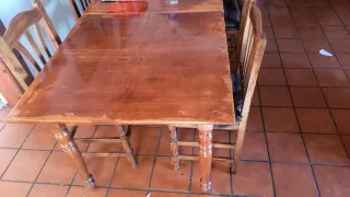 Tavoli quadrati da 80 x 80 cm in legno a 20 euro. Sedie in legno abbinate a 7 euro. Disponibili circa 15 tavoli e oltre 40 sedie.