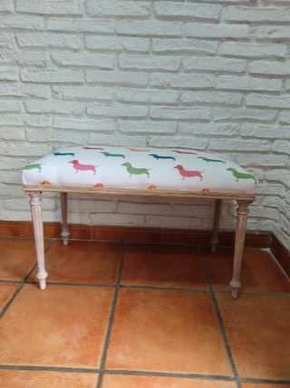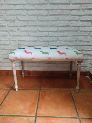 Banco scarpe appena restaurato in legno lavato e rivestito con tessuto Cane scozzese multicolore, 73 cm di larghezza, 46 cm di altezza e 37 cm di profondità. I nostri mobili sono trattati preventivamente contro i tarli e presentano imperfezioni tipiche degli anni che li rendono unici. Ideale per qualsiasi ambiente e stanza, vetrine, eventi, cameretta dei bambini, ecc. Decorazione originale ed esclusiva, nessun pezzo uguale. Aggiorniamo mobili di ogni tipo in stile vintage, Sabby chic, retrò. Comodini, tavolini, tavoli, mobili d'ingresso, consolle, vetrine, testate, camere da letto, tavolini da caffè, regali unici.
