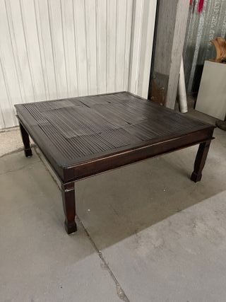 vecchio tavolino da caffè in legno e bambù, presenta qualche danno nell'angolo vedi foto 90x90x38 ✅ Rispondo a Whatsapp 686776608 JUAN ✅ Spedizione inclusa a Madrid, APPUNTAMENTO PER VEDERE LA MOSTRA A GETAFE ✅ PIÙ ARTICOLI NEL MIO PROFILO, MOLTO PIÙ ECONOMICI RISPETTO AL NEGOZIO libreria, tavolo, comodini, camera da letto, ufficio, poltrona da ingresso, consolle da trucco, panca, poltrona, divano, foto, specchio outlet becara el Globo maison du monde kave home elpiece Conforama banak, soggiorno, cucina, ingresso, bagno, legno antico, vintage, antiquariato retrò, figura orientale, cinese, cinese, sala da pranzo coloniale