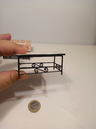 Tavoli da esterno o da interno realizzati da me, in ferro battuto e ceramica o in lamiera e perla per case delle bambole, scala 1:12. Realizzo mobili in legno e ferro battuto su richiesta. Prezzo unitario