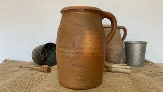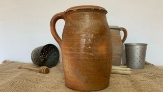 Antica brocca in gres, interno smaltato con manico, in perfette condizioni tranne che per le patatine sotto la bocca (vedi foto) ideale per la presentazione su tavoli in stile rustico, questi pezzi fatti a mano possono presentare differenze di colore e imperfezioni dovute alla loro fabbricazione, rendendoli pezzi unici. altezza: 21 cm. diametro totale: 16,5 cm tavolo terracotta argilla arenaria terracotta fiori in ceramica vaso da giardino vaso da tavola stoviglie posate vaso Francia