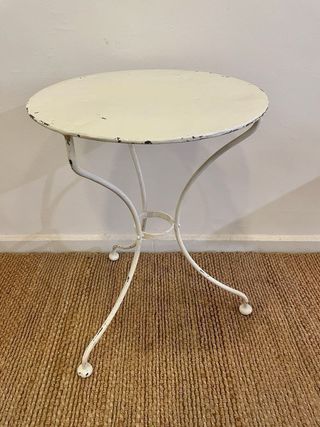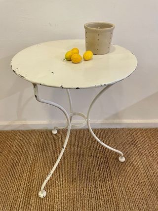 Splendido tavolino restaurato. Francia 1950. Mobile antico, tavolino, comodino, buffet, credenza, vetrina, sedia, panca, sgabello, tavolino da notte, vintage, ceramica, specchio, antiquariato, decorazione, interior design, stile provenzale, rustico, rurale, masia, casa di campagna, giardino, mobili antichi, tenuta, hotel, negozio locale, l’Ametlla de Mar, Tarragona