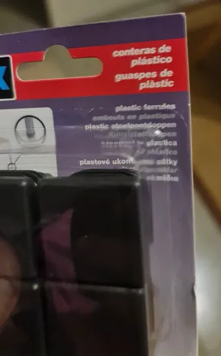 Confezione da 4 copriscarpe in plastica nera. Proteggono il pavimento da graffi. Ideali per gambe di sedie o tavoli.