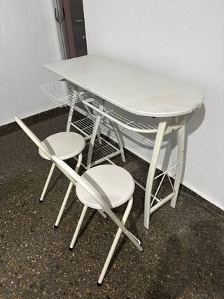 Tavolo alto e 2 sgabelli pieghevoli bianchi