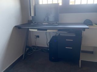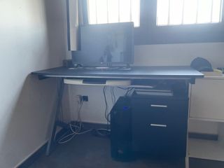Scrivania elegante in stile vintage con un design classico. La scrivania è in buone condizioni, senza segni visibili tranne quelli mostrati nella foto. Durante il montaggio si è rotta leggermente una guarnizione (vedi foto), ma funziona perfettamente. È comoda per lavorare. I cassetti hanno ruote e sembra che fossero dotati di chiusura, ma non ci è stata fornita la chiave. È pesante e robusto. Da ritirare a Sant Antoni. Lo spazio tra i due cassetti è di 60 cm, ma possono essere rimossi. Finitura in formica. Cassetti con ruote per lo stoccaggio.