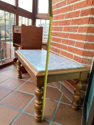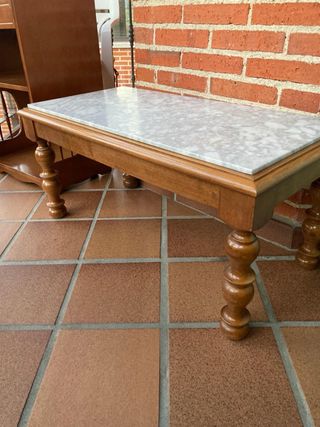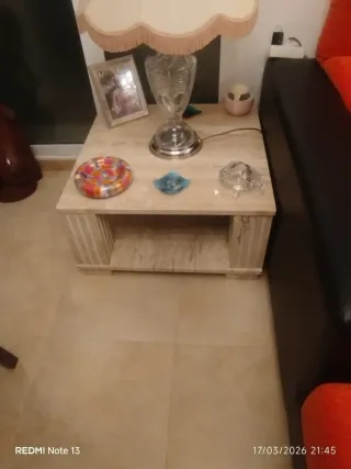In vendita per trasloco. Elegante tavolo da salotto con un design unico. - Piano in marmo. - Base e struttura in legno. - Tonalità beige e marrone che si combinano facilmente. È necessario venire a ritirarlo. Si trova a El Ejido.