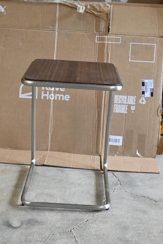 Tavolo laterale dal design moderno con superficie color noce e struttura in metallo. - Finitura superficiale in colore noce. - Gambe e struttura in finitura argento.