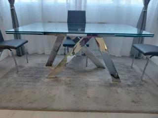 Tavolo in cristallo e acciaio inox per soggiorno/cucina