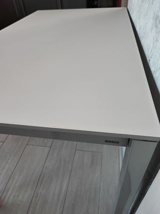 Bellissimo tavolo Scavolini 140 x 80 con tre allunghe di 40 cm ciascuna per un totale di 260 cm di lunghezza. Gambe realizzate in metallo verniciate grigio. Piano Vetro temprato sp.05 mm verniciato grigio ghiaccio opaco. Allunghe posizionate sotto il piano. Altezza tavolo 76 cm Nessun difetto, nessun graffio. Come nuovo!
