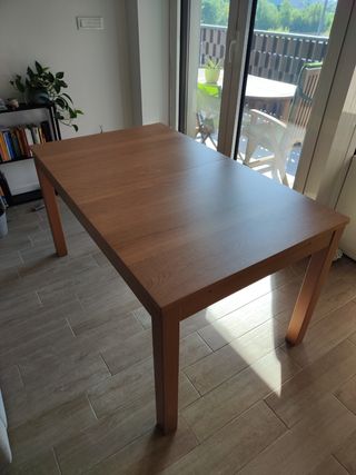 Vendo tavolo da pranzo allungabile Ikea 140x84 cm, con due prolunghe da 40 cm, altezza del tavolo 74cm. Il tavolo presenta qualche piccolo segno di usura come si vede dalle foto ma è in ottime condizioni. Se interessati sono in vendita anche le 4 sedie Deghi della prima foto. Per ulteriori informazioni contattatemi pure.