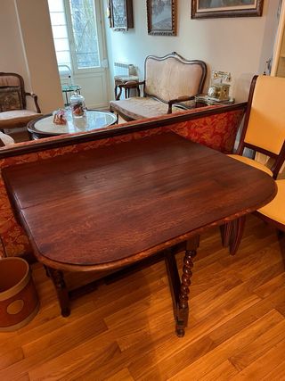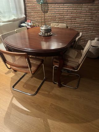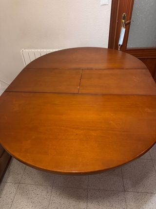 1. Tavolo da pranzo allungabile + 6 sedie in legno massello* - Ottimo stato Tavolo da pranzo allungabile in legno massello con **6 sedie abbinate**. Mobile solido, stabile e ben conservato, stile classico. Ideale per soggiorno o sala da pranzo spaziosa. ✔ Tavolo allungabile ✔ Legno massello ✔ Set completo ✔ Uso normale, senza rotture Chiuso: 90x 160cm Semi aperto (un lato): 90 x 210cm Aperto (due lati): 90x 260cm • Posizione: **Maioris, Maiorca** ✉ Ritiro a domicilio. Possibile assistenza per il carico. Prezzo: 390 € (trattabile)