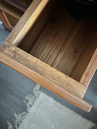 Comodino in legno massello, completamente nuovo. Il suo design classico ed elegante lo rende perfetto per qualsiasi camera da letto. È nuovo, fatto da me. Ha un colorante applicato e una finitura di vernice trasparente. - Cassetto con maniglia. - Gambe solide e stabili. - Finitura naturale.