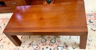 Tavolo da centro elegante per il soggiorno, realizzato in legno massello con inserto in cristallo. Dimensioni: 120*60*50. Design robusto e durevole. Finitura in tonalità legno naturale. Rinforzo sotto il piano per sopportare un peso considerevole. Ben conservato, ma potrebbe presentare alcuni segni (vedi penultima foto). Costo 13 anni fa 450€, vendo per trasloco.