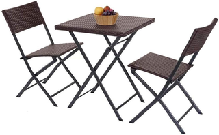 Dona un tocco elegante e raffinato agli ambienti esterni di casa tua con questo fantastico set da giardino con sedie e tavolo. Questo fantastico set da giardino è realizzato interamente in polyrattan materiale molto resistente e di altissima qualità perfetto per gli ambienti esterni. Il set è composto da 2 sedie e da un tavolo di 62 x 62 cm, le solide strutture in tubolari di acciaio inox di ogni componente è completamente pieghevole e salvaspazio, ciò consente di poter conservare il set anche negli ambienti più piccoli quando non utilizzato. Dal design semplice e moderno questo set da giardino renderà i vostri spazi esterni davvero