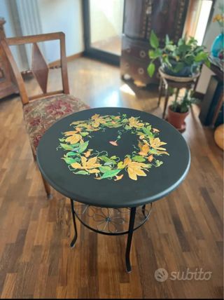 Elegante tavolo alto artigianale, perfetto per aggiungere un tocco di colore e natura alla tua casa. Il piano rotondo è decorato con un motivo floreale dipinto a mano, che ricorda un bouquet di magnolie e convolvulus. Adatto solo per interni. - Decorazione floreale dipinta a mano - Motivo di magnolie e convolvoli - Il supporto in metallo non e’ incluso nel prezzo. Prezzo Promo Natale 2025 🎅🏻.