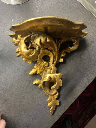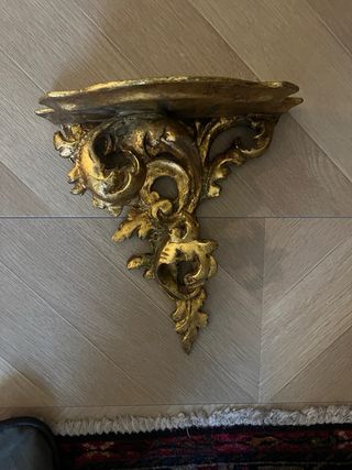 Elegante tavolino da parete con finitura dorata. Perfetto per aggiungere un tocco di stile. - Design decorativo con dettagli intagliati. - Struttura in legno.
