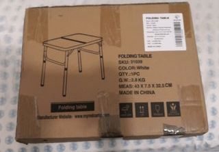 Tavolino pieghevole, ideale per campeggio o picnic. Si ripiega facilmente per il trasporto. - Gambe regolabili. - Struttura in metallo e plastica.