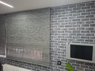 Tende avvolgibili in tessuto Screen (fibra di vetro rivestita in PVC) di colore grigio. Ideali per controllare la luce e la privacy. Si puliscono con un panno umido. Meccanismo di avvolgimento. Finitura moderna. Apertura al 5%. Lunghezza 250 cm. 2 pz da 165 cm (45€/pz) e 2 pz da 105 cm (35€/pz). Se ti interessano tutte e 4 le unità a 145€.