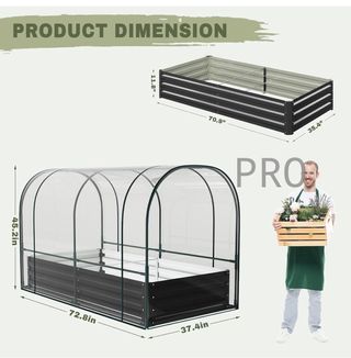 Letto rialzato in metallo SUNYRISY con serra in PVC, letto rialzato per giardino con copertura e finestra di visualizzazione, cassetta per piante, cassetta per fiori, aiuola per erbe, adatto per pomodori, erbe, fiori e verdure